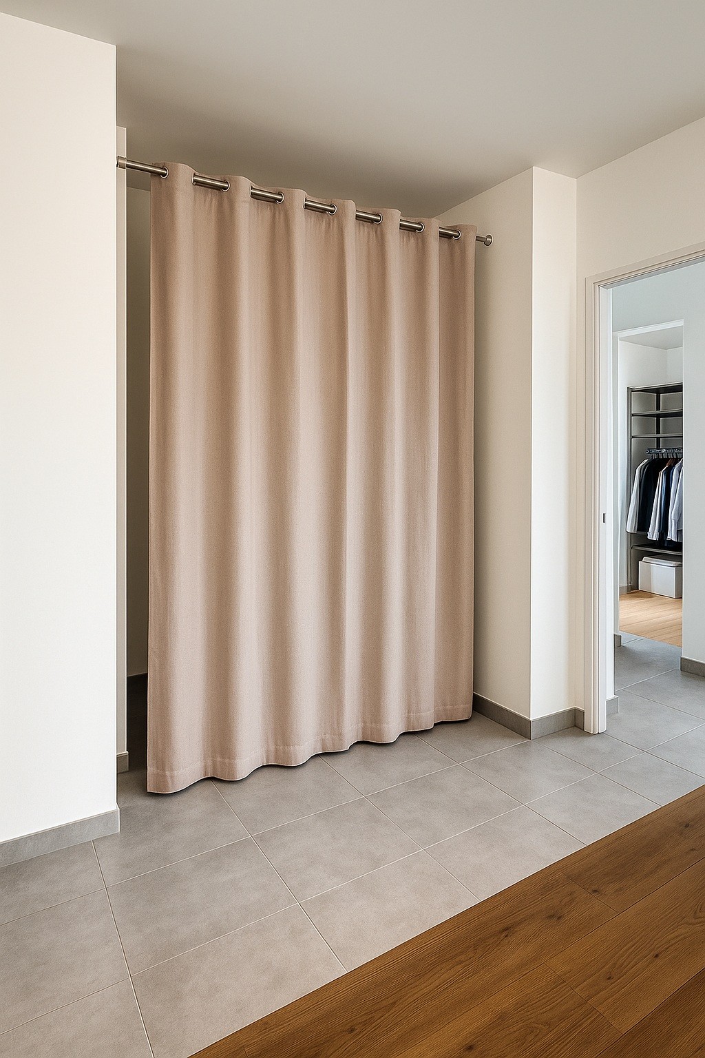 - Tous les murs ont été repeints dans des tons lin pour uniformiser et agrandir l’espace.