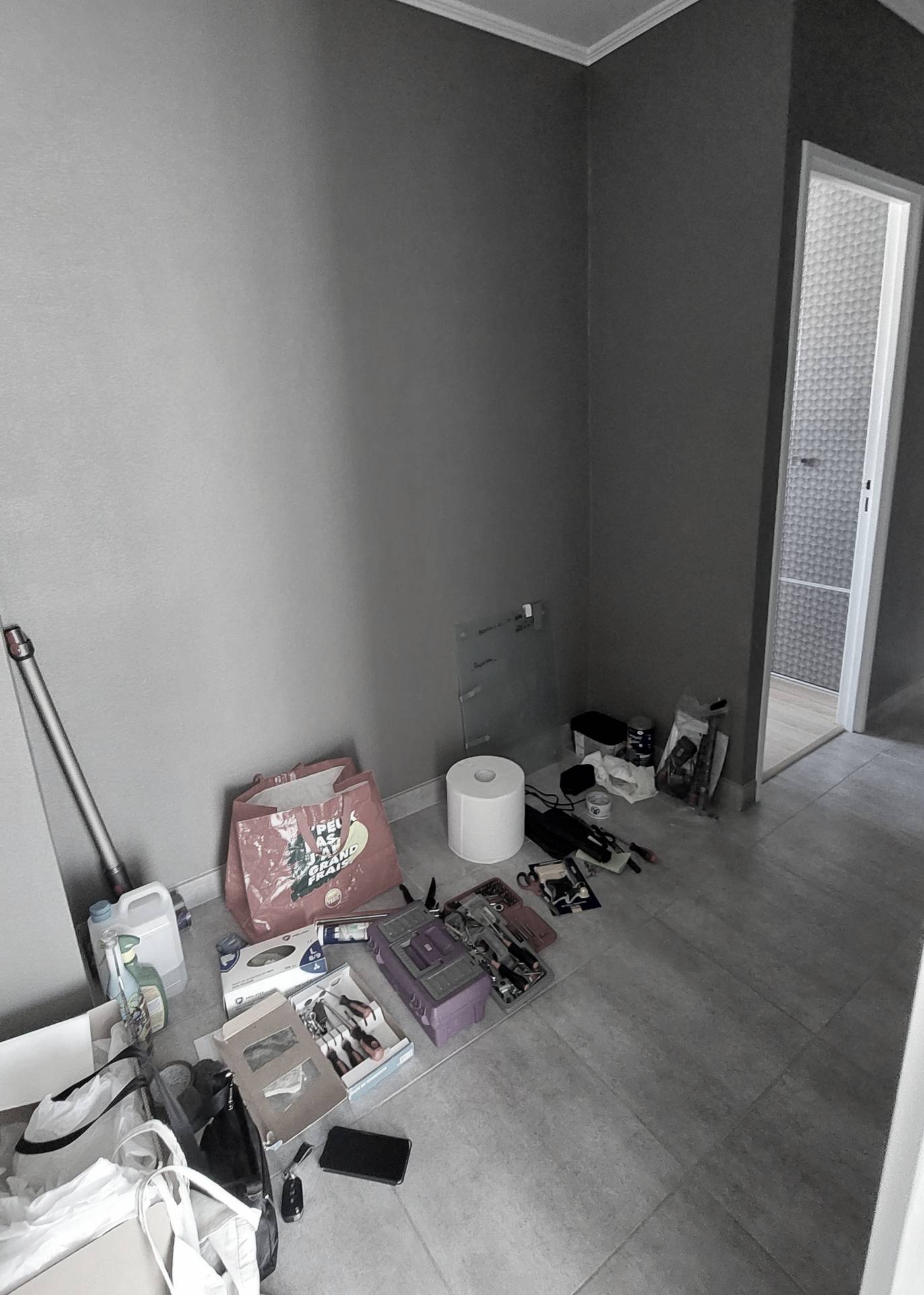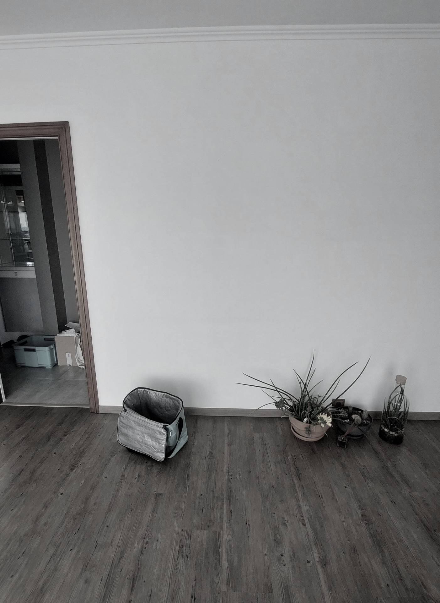 - Une partie de la cloison entre le couloir et le séjour a été déposée pour agrandir cet espace.