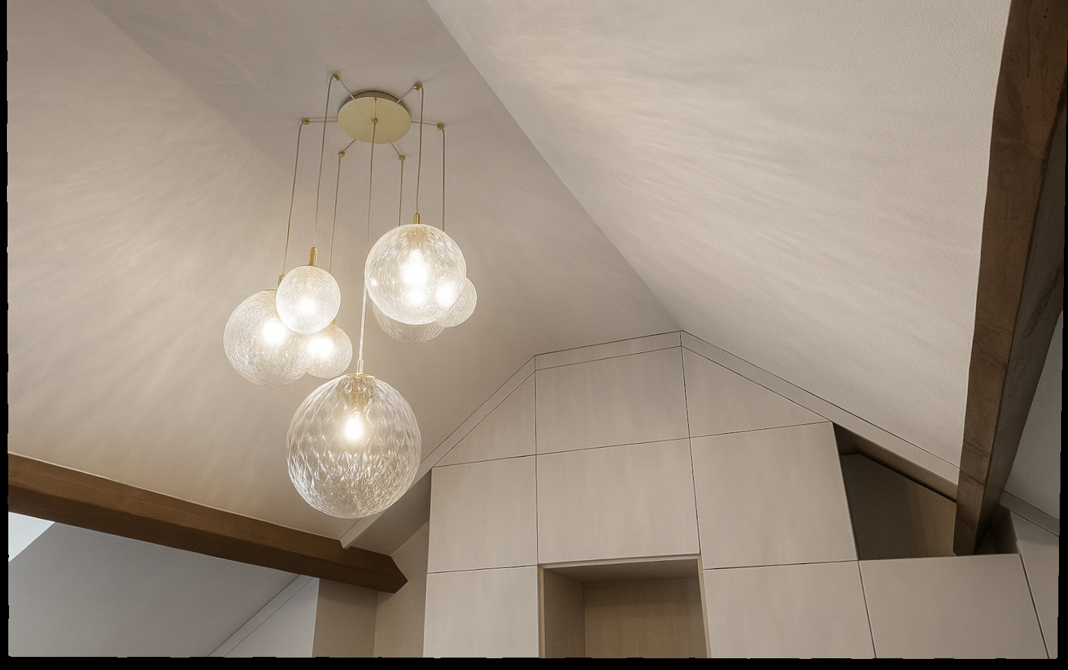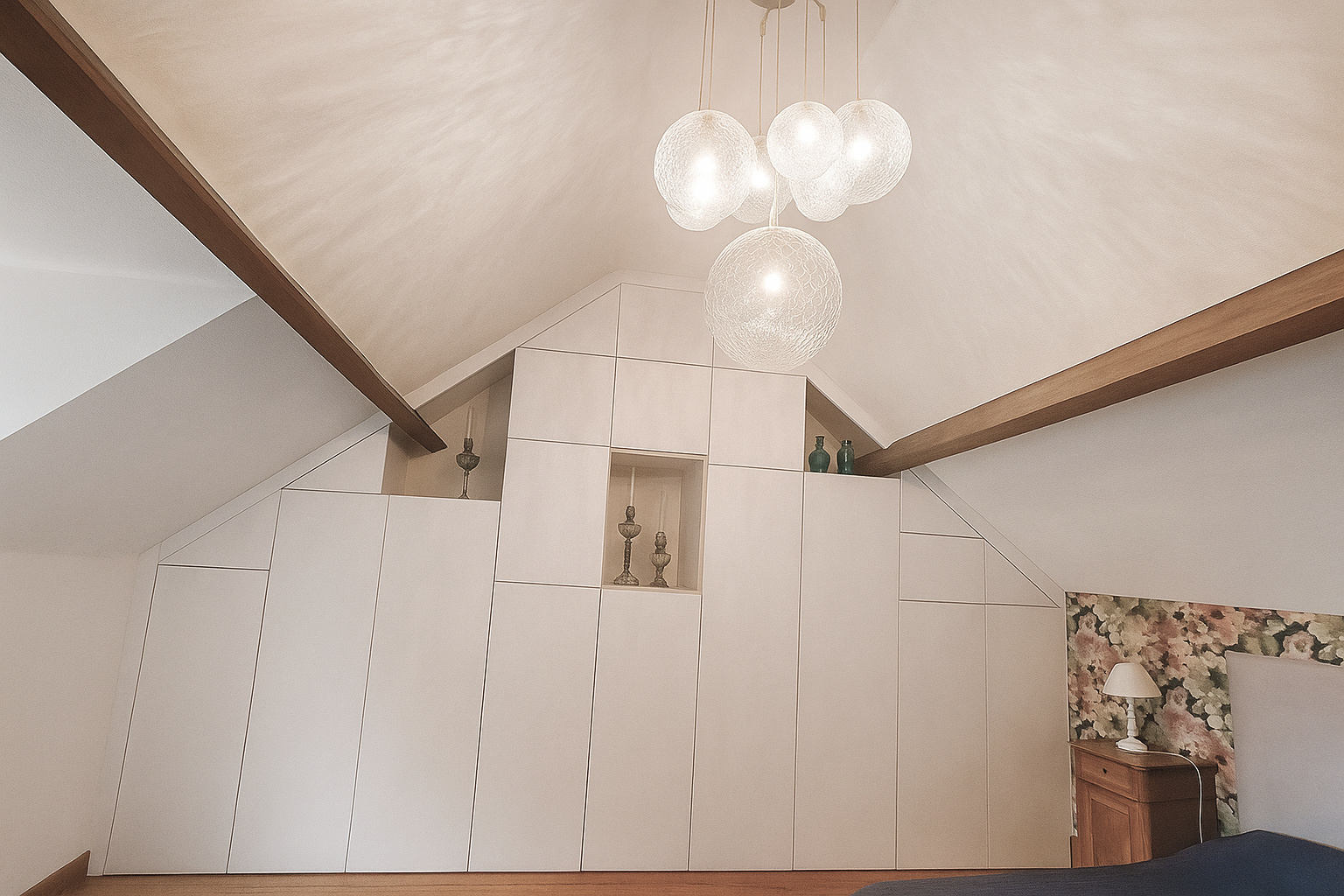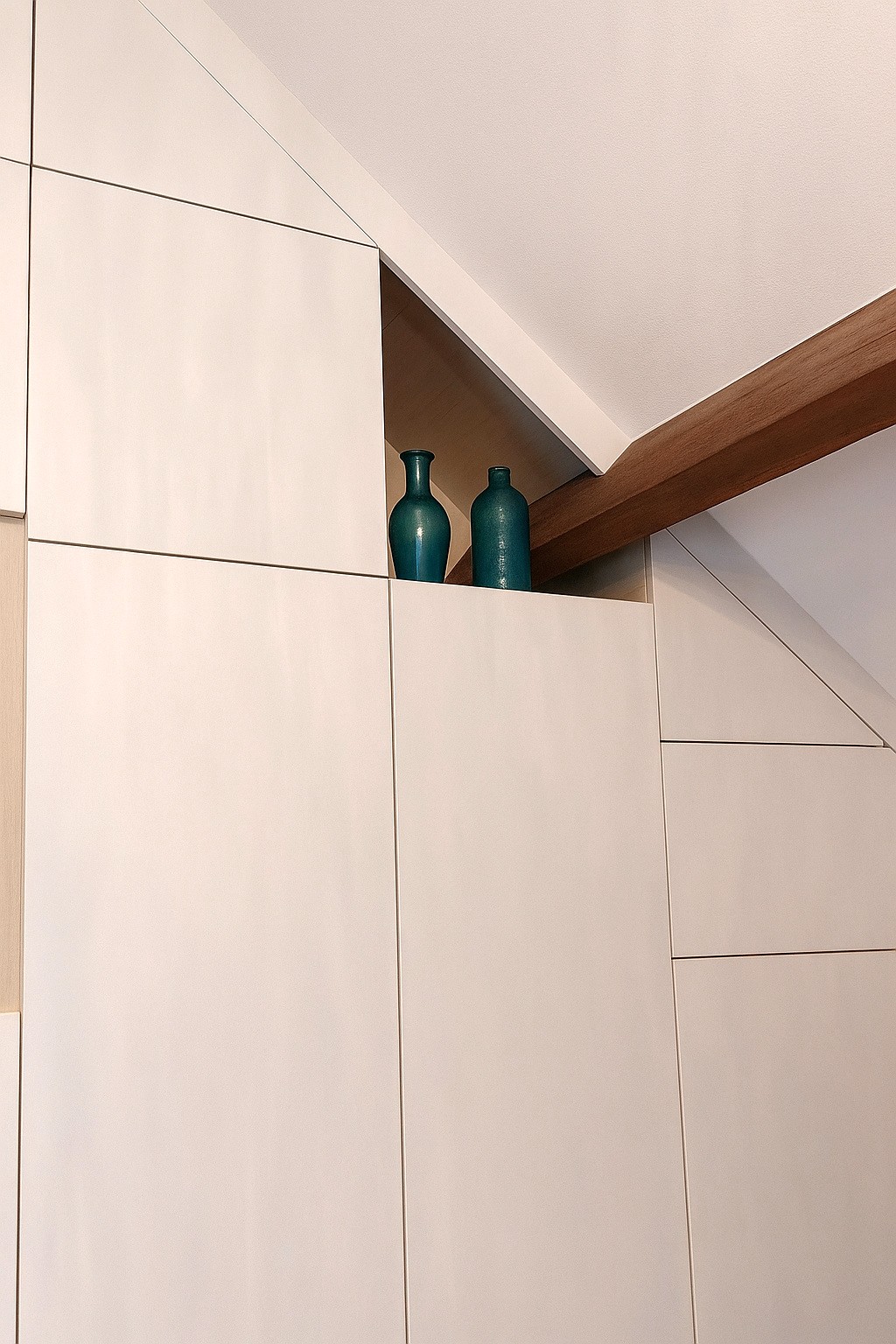- des niches en bois clair pour conserver la profondeur de la pièce
