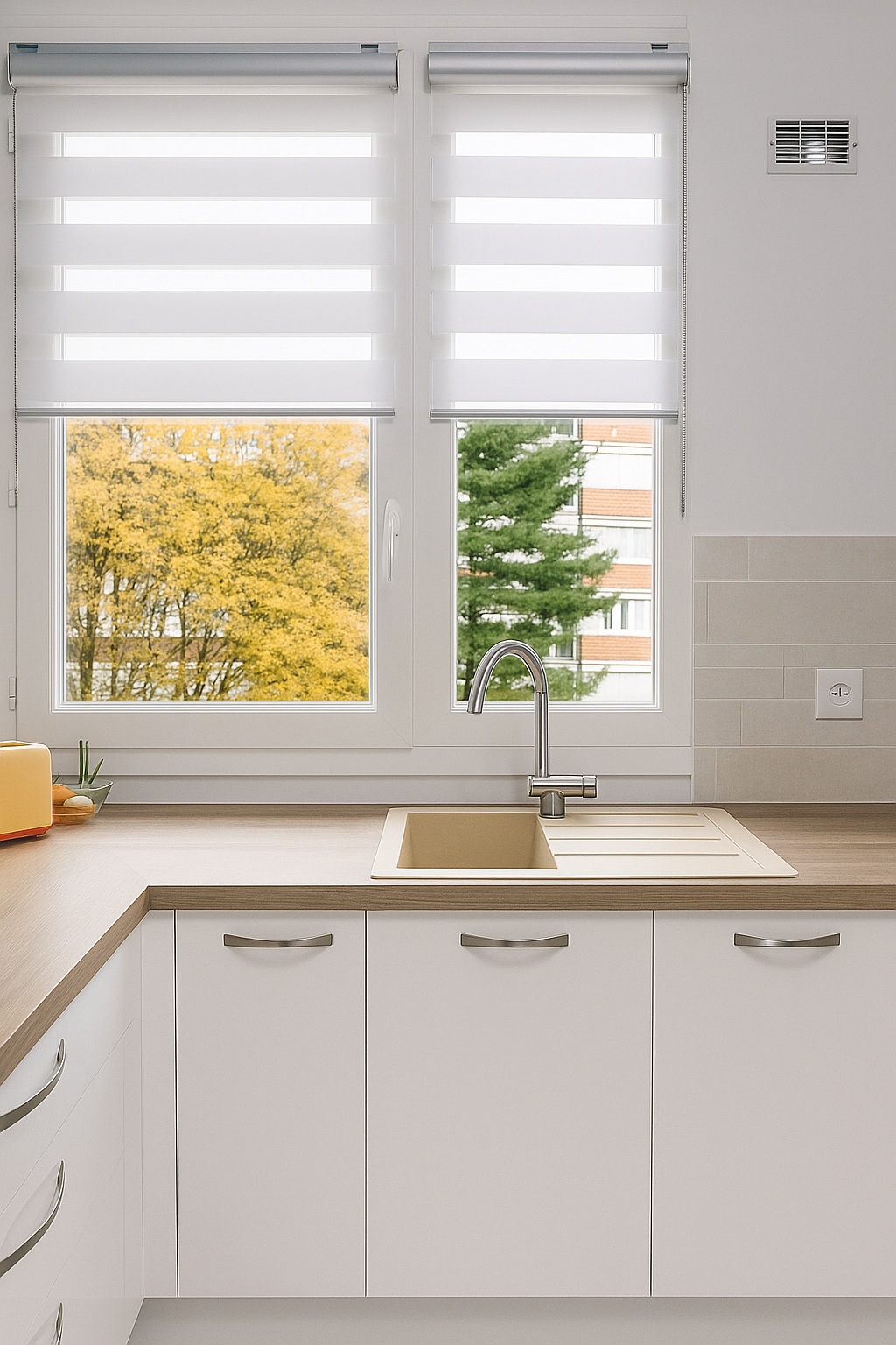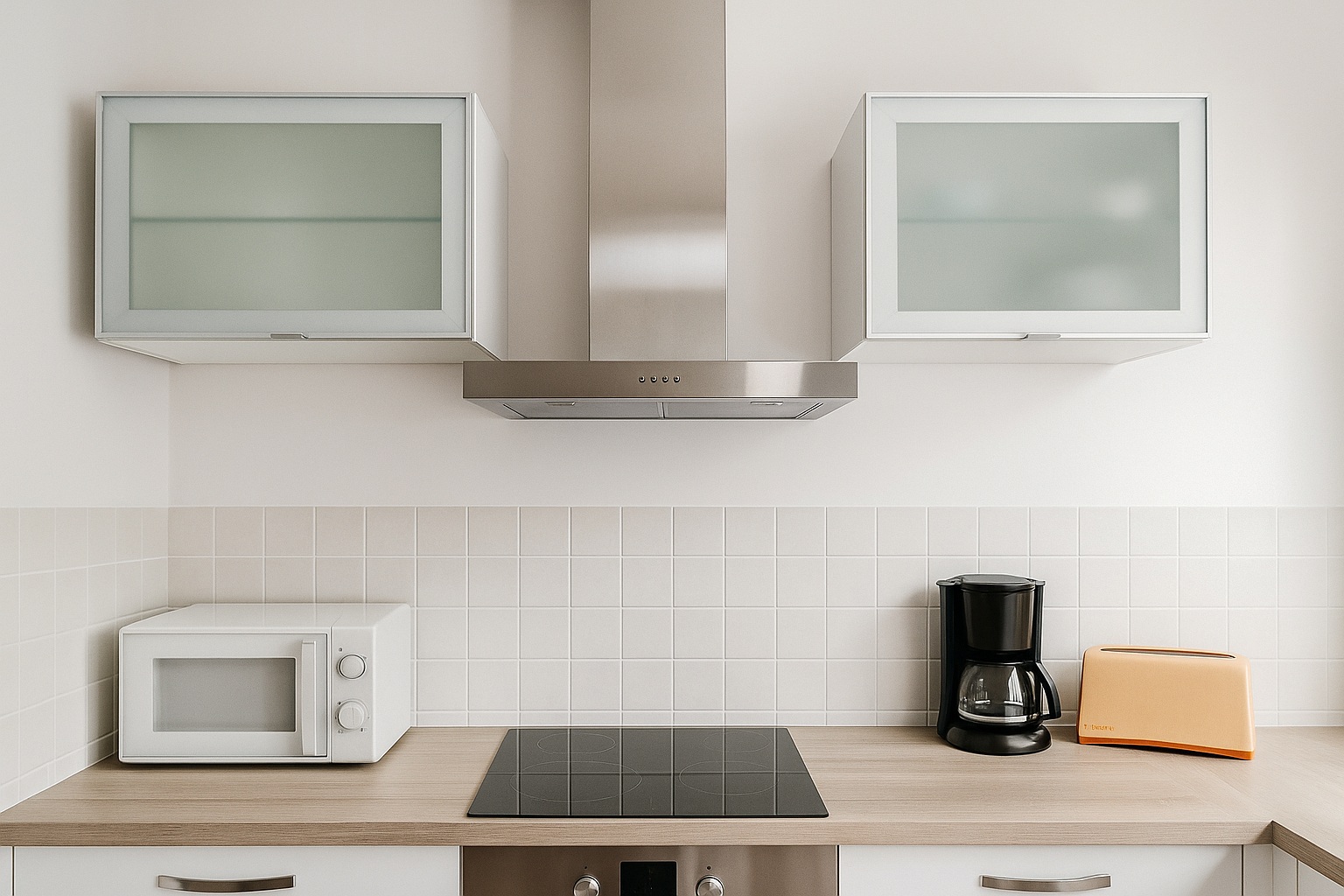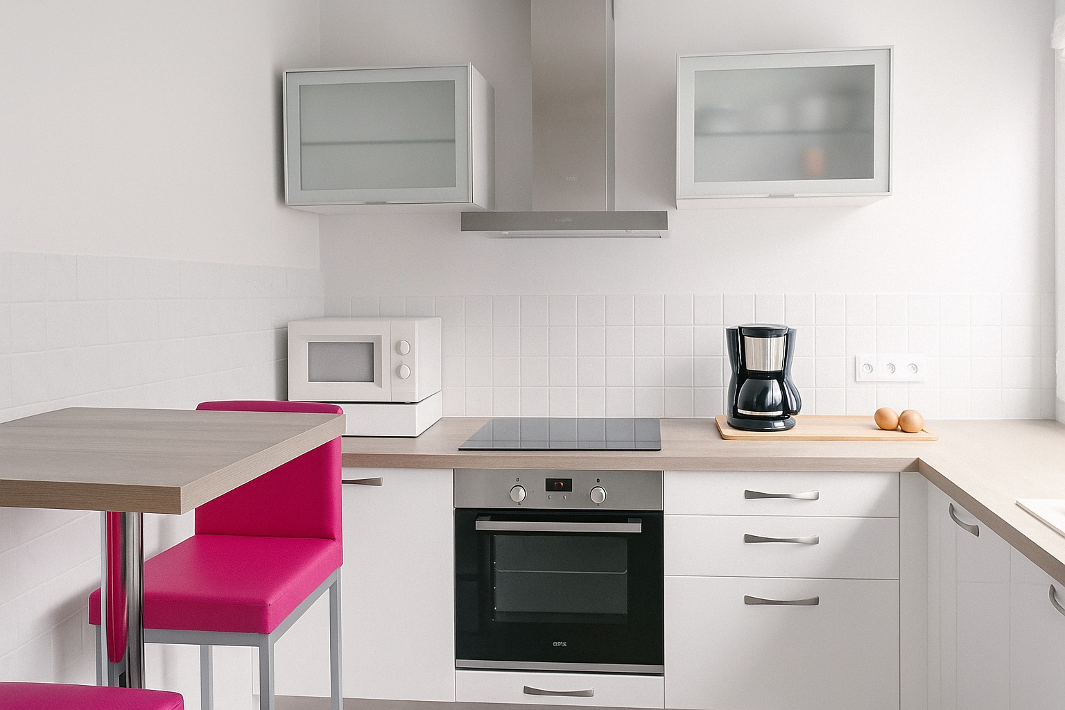 Plus de rangement, plus d’espace dans une petite cuisine très lumineuse.